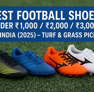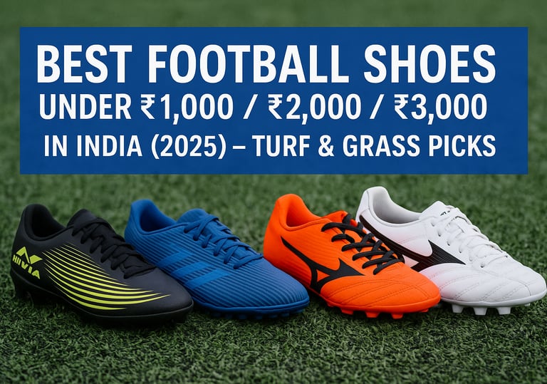 Expert guide to the best football shoes under ₹1,000, ₹2,000 and ₹3,000 in India (2025). Student-friendly picks for turf and natural grass, sizing tips, buying guide, and Amazon links.