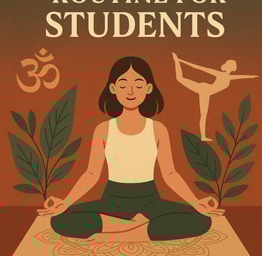 A simple 20–25 minute daily yoga routine for students including warm-up, breathing, Surya Namaskar, meditation, posture correction, safety tips and weekly planner.