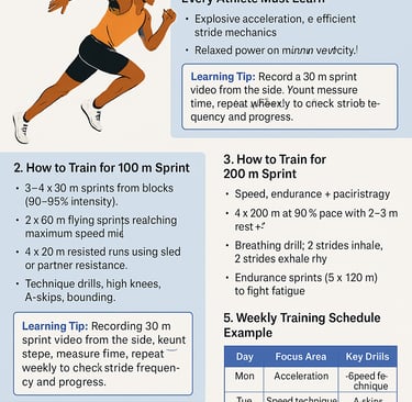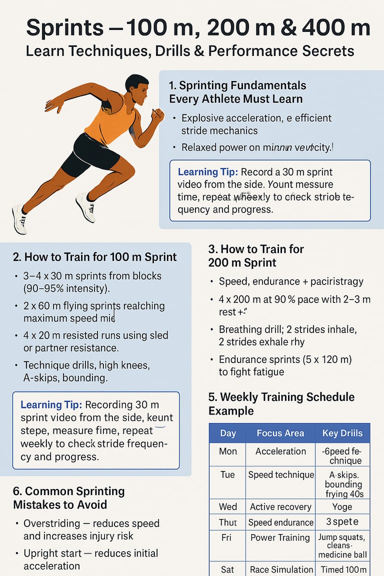 Learn 100m, 200m, and 400m sprint techniques, drills, and weekly plans. Athletech Future Sports’ guide to speed, form, and record-breaking performance.